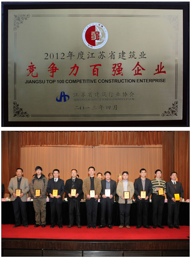 經(jīng)評審委員會初審、統(tǒng)計、公示、核審,南通市達(dá)欣工程股份有限公司入選2012年度江蘇建筑業(yè)企業(yè)競爭力百強(qiáng),排名第40位,與2011年相比,公司綜合競爭力排名在業(yè)界內(nèi)有了明顯提升,公司董事長馬和軍同時榮獲江蘇建筑業(yè)優(yōu)秀企業(yè)經(jīng)理。江蘇建筑業(yè)企業(yè)“雙百強(qiáng)”評比是根據(jù)企業(yè)經(jīng)營規(guī)模、資產(chǎn)規(guī)模、盈利能力、員工構(gòu)成、科技進(jìn)步、管理水平、精神文明等七個指標(biāo)體系綜合評比產(chǎn)生的,它代表了企業(yè)的綜合競爭力水平。