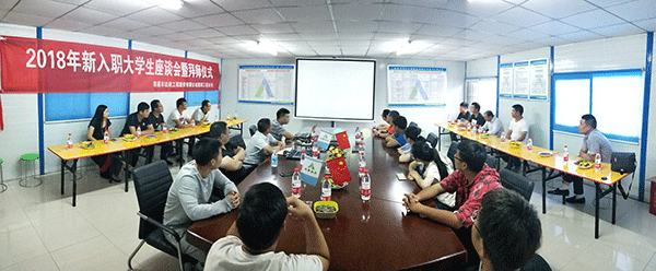 座談會上,新員工們首先進行了簡短的自我介紹,讓大家彼此有了了解。傅海榮同志對新員工的到來表示歡迎,并就第四工程公司的發(fā)展歷史、經營現(xiàn)狀、創(chuàng)優(yōu)情況、人才培養(yǎng)情況做了簡單介紹。隨后,兩名2017年入職員工代表王洋、劉建軍依次發(fā)言,總結了過去一年的工作經驗,以切身體會為大學生們未來的工作生活作了實實在在的指引。
