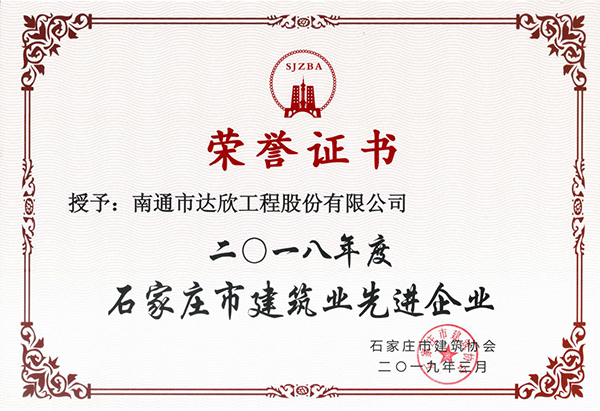 我司被石家莊市建筑協(xié)會評為“2018年度石家莊市建筑業(yè)先進企業(yè)”同時,楊靜同志評為“2018年度石家莊市建筑業(yè)優(yōu)秀企業(yè)經(jīng)理”,劉紅強同志被評為“2018年度石家莊市建筑業(yè)優(yōu)秀項目經(jīng)理”,被河北省建筑業(yè)協(xié)會評為“2018年度河北省建筑業(yè)先進企業(yè)”、“河北省建筑業(yè)AAA級社會誠信企業(yè)”,這是我司連續(xù)多次獲此殊榮;同時,徐仁忠、楊靜同志被評為“2018年度河北省建筑業(yè)優(yōu)秀企業(yè)管理者”,傅海榮同志被評為“2018年度河北省建筑業(yè)優(yōu)秀總工程師”。