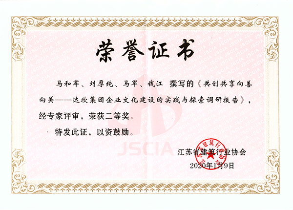 在企業(yè)文化理念和制度引導(dǎo)下,全體達欣人將積極弘揚企業(yè)文化傳承,將達欣優(yōu)秀企業(yè)文化建造在一項項精品工程中,在全國各地施工項目中繼續(xù)展示良好的企業(yè)形象,唱響“達欣”品牌,助推企業(yè)高質(zhì)量發(fā)展。