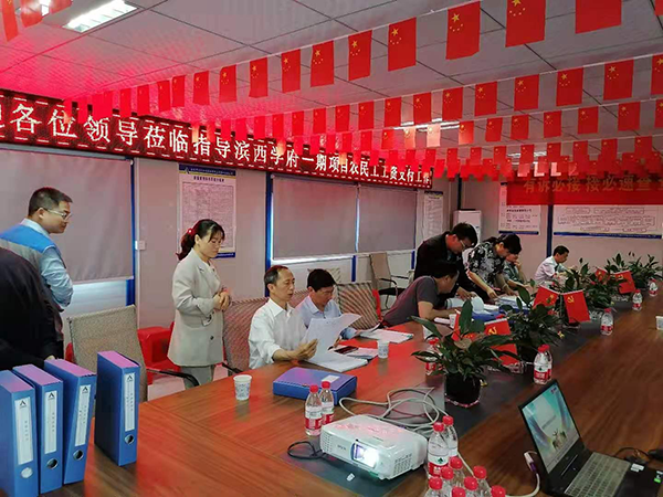 檢查結(jié)束后,檢查組一行還參觀了項(xiàng)目工資發(fā)放公示欄,并對(duì)項(xiàng)目部在農(nóng)民工工資發(fā)放方面的系列做法給予肯定。