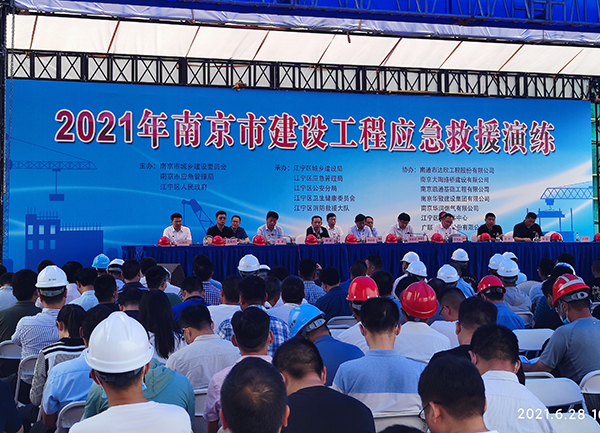6月28日,由南京市城鄉(xiāng)建設(shè)委員會(huì)、南京市應(yīng)急管理局、江寧區(qū)人民政府主辦的“南京市建設(shè)工程應(yīng)急救援演練觀摩會(huì)”在第二工程公司蘇沃科技園項(xiàng)目部召開。南京市建委副書記朱家祥、南京市安委辦專職副主任韓成頌;江寧區(qū)人民政府副區(qū)長(zhǎng)孫兆金、江寧區(qū)城鄉(xiāng)建設(shè)局局長(zhǎng)易強(qiáng)等領(lǐng)導(dǎo),全市施工企業(yè)、監(jiān)理單位、建設(shè)單位負(fù)責(zé)人及相關(guān)人員等近500余人參加本次活動(dòng)。集團(tuán)常務(wù)副總經(jīng)理王邦國主席臺(tái)就坐。