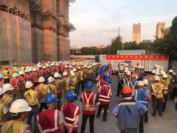 盛夏時節(jié),熱浪滾滾,氣溫居高不下。第一工程公司總經(jīng)理倪志榮帶隊走訪慰問重點建設(shè)項目施工工地一線作業(yè)人員,為他們送去炎熱夏季的一份清涼和關(guān)心。