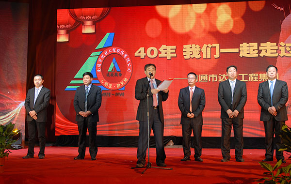 公司董事長馬和軍進(jìn)行了致辭答謝。他說在這樣一個特殊的時刻和一個特殊的地點(diǎn),我們正做著一件具有特別意義的事情。我們一起回顧達(dá)欣的光榮歷史,一起回味達(dá)欣40年來經(jīng)歷的風(fēng)風(fēng)雨雨,一起品嘗我們用勤勞和智慧的雙手?jǐn)€獲的豐收和喜悅。40年來,我們始終堅持改革,并最終受益于改革;40年來,我們傳承并不斷發(fā)揚(yáng)光大著一種精神,這種精神的核心就是“艱苦奮斗,以身作則”、“團(tuán)結(jié)拼搏,顧全大局”、“凝心聚力,勇于爭先”;40年來,在達(dá)欣這個大家庭中始終洋溢著一種濃濃的情誼。站在達(dá)欣40年這個歷史新起點(diǎn)上,相信達(dá)欣的光輝旗幟,一定會更好地迎風(fēng)展揚(yáng)、高高展揚(yáng)、百年展揚(yáng);在熱烈的掌聲中,縣委書記陸衛(wèi)東發(fā)表重要講話,他指出,今天我們共同見證和分享達(dá)欣集團(tuán)四十年發(fā)展的成功和喜悅,作為縣內(nèi)的標(biāo)桿建筑企業(yè),達(dá)欣步入了公司歷史以來發(fā)展最快、榮譽(yù)最高、分配最多、貢獻(xiàn)最大的時期,他希望公司要進(jìn)一步深化改革,加快發(fā)展,高起點(diǎn)定位,突出重點(diǎn),好中求快,實(shí)現(xiàn)達(dá)欣集團(tuán)的新飛躍。