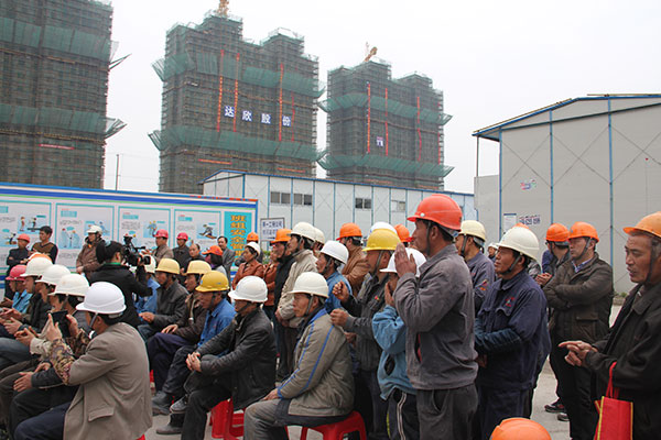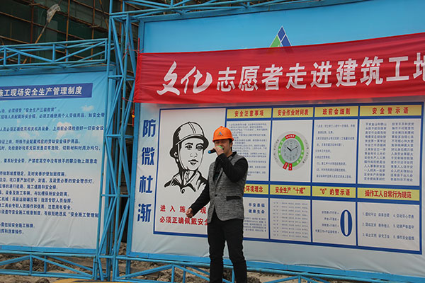 文化志愿者的精彩演出受到了職工們的熱烈歡迎,“我平時(shí)都在高空作業(yè),難得有這樣的機(jī)會(huì)坐下來(lái)看現(xiàn)場(chǎng)表演,這樣的活動(dòng)讓我們感到很開(kāi)心?!惫び牙钊蕠?guó)笑容滿(mǎn)面地說(shuō)。