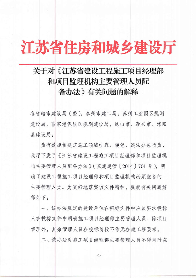 附件:關(guān)于對(duì)《江蘇省建設(shè)工程施工項(xiàng)目經(jīng)理部和項(xiàng)目監(jiān)理機(jī)構(gòu)主要管理人員配備辦法》有關(guān)問題的解釋